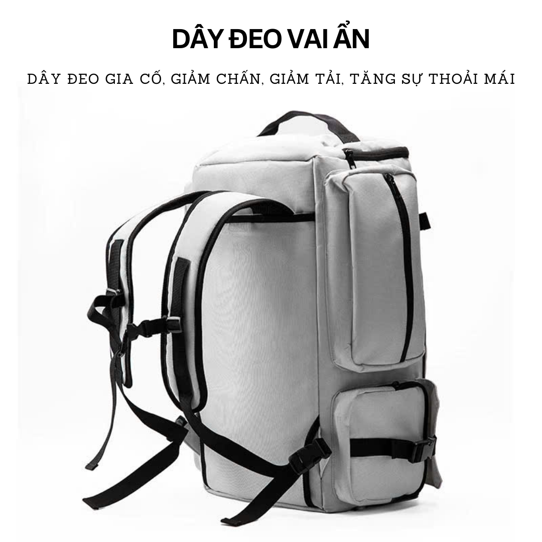 - Ngăn đựng đồ siêu rộng, chia nhiều ngăn nhỏ tiện lợi, có ngăn để giày và ngăn túi hai bên hông.