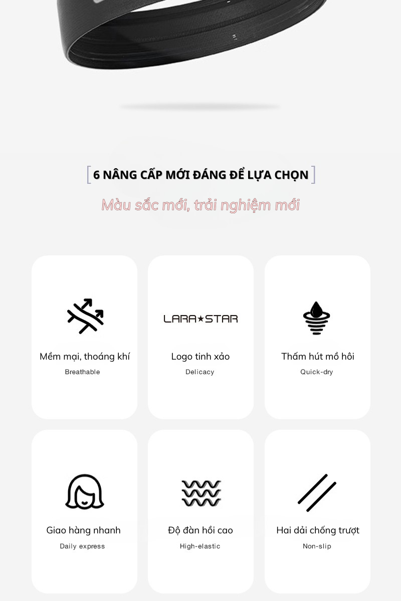Băng đô thể thao Lara Star LS0906 không xù, thấm mồ hôi tốt, co giãn cao, thiết kế ko thấy đường may