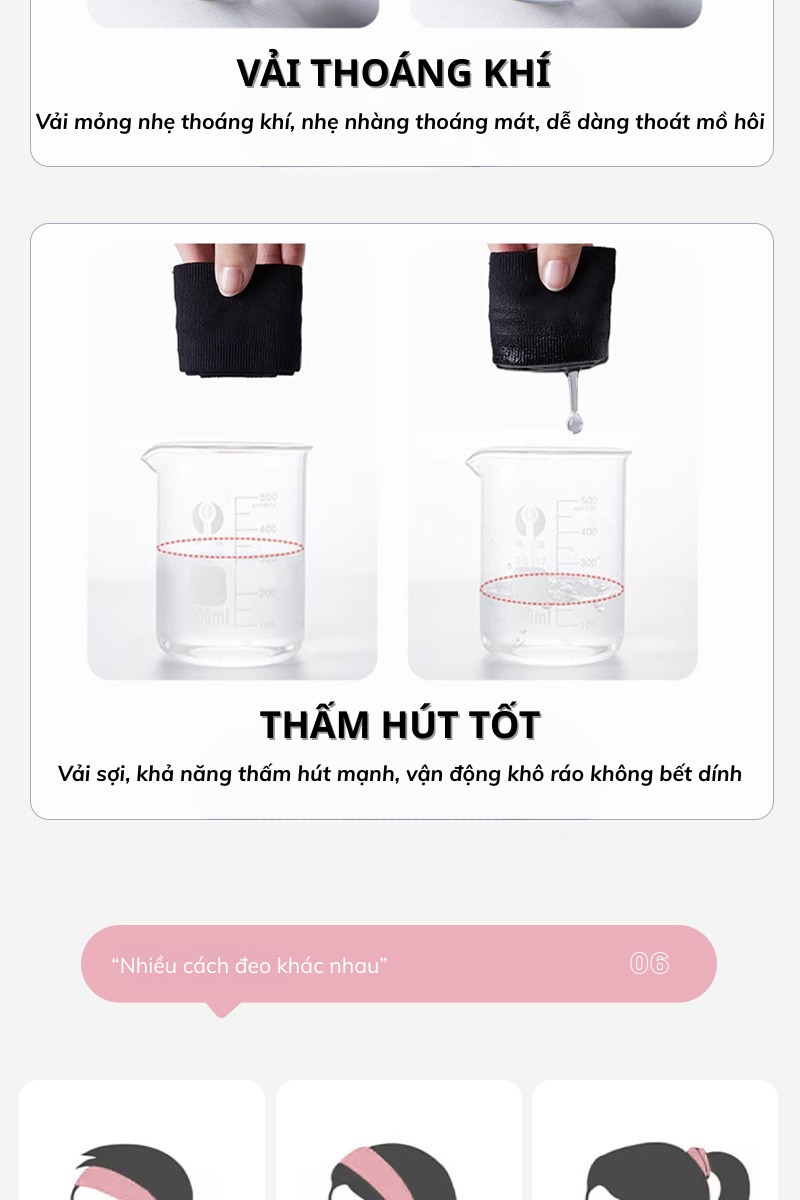 + Thấm hút mồ hôi: Giúp thấm mồ hôi từ trán, ngăn không cho mồ hôi chảy xuống mắt, gây cay mắt và làm cản trở tầm nhìn khi tập luyện.