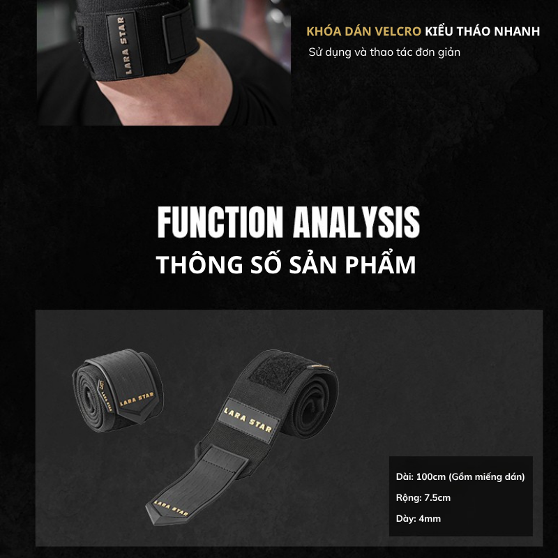 -Khóa Dán Velcro Tiện Lợi: Hệ thống khóa dán Velcro giúp việc sử dụng và tháo tác trở nên cực kỳ đơn giản và nhanh chóng. Bạn có thể dễ dàng điều chỉnh độ siết phù hợp với từng bài tập.