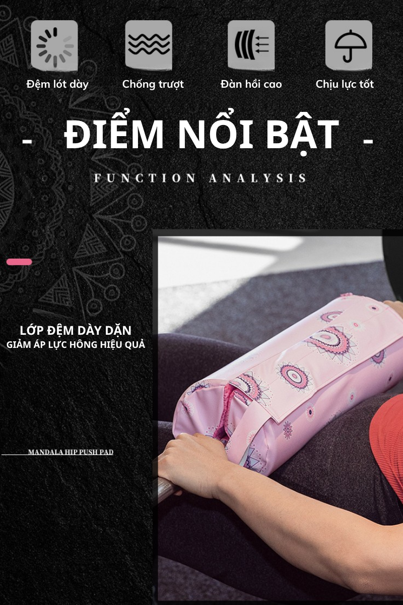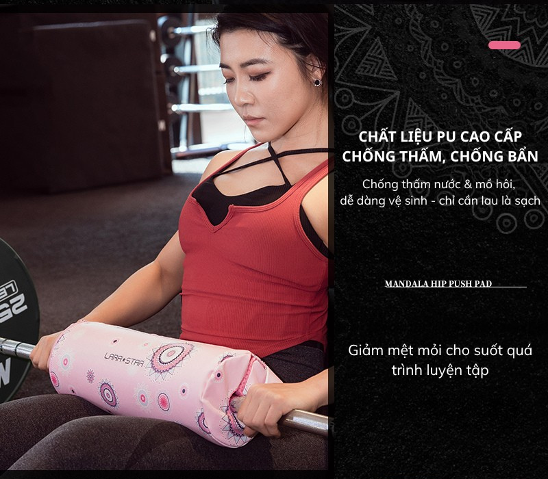 Đệm tạ đẩy hông Lara Star LS1126, họa tiết Mandala, miếng đệm cầu hông dày bảo vệ tốt, vải PU chống thấm