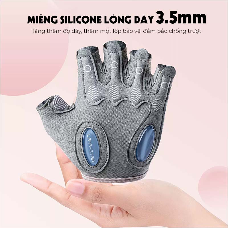 Găng Tay Tập Gym Lara Star LS0711, Có Miếng Silicon Lỏng 3,5MM Chống Trượt, Bảo Vệ Tay An Toàn