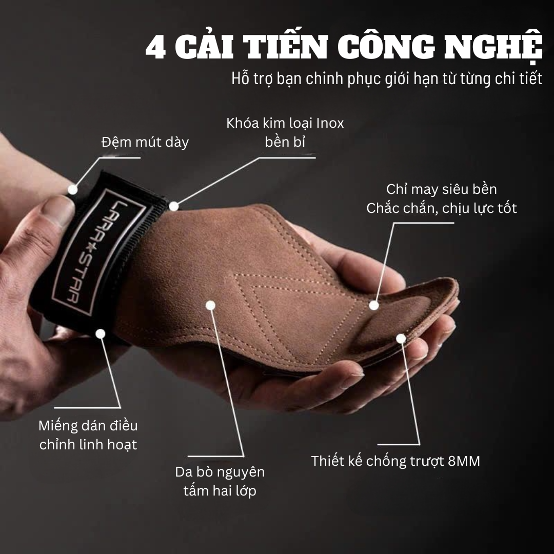 - Găng Tay Tập Gym Lara Star LS0776 được làm bằng da bò, chống trơn trượt và chống mài mòn, da bò dày hai lớp giúp giảm tổn thương cơ tay, hỗ trợ hiệu quả và bền bỉ.