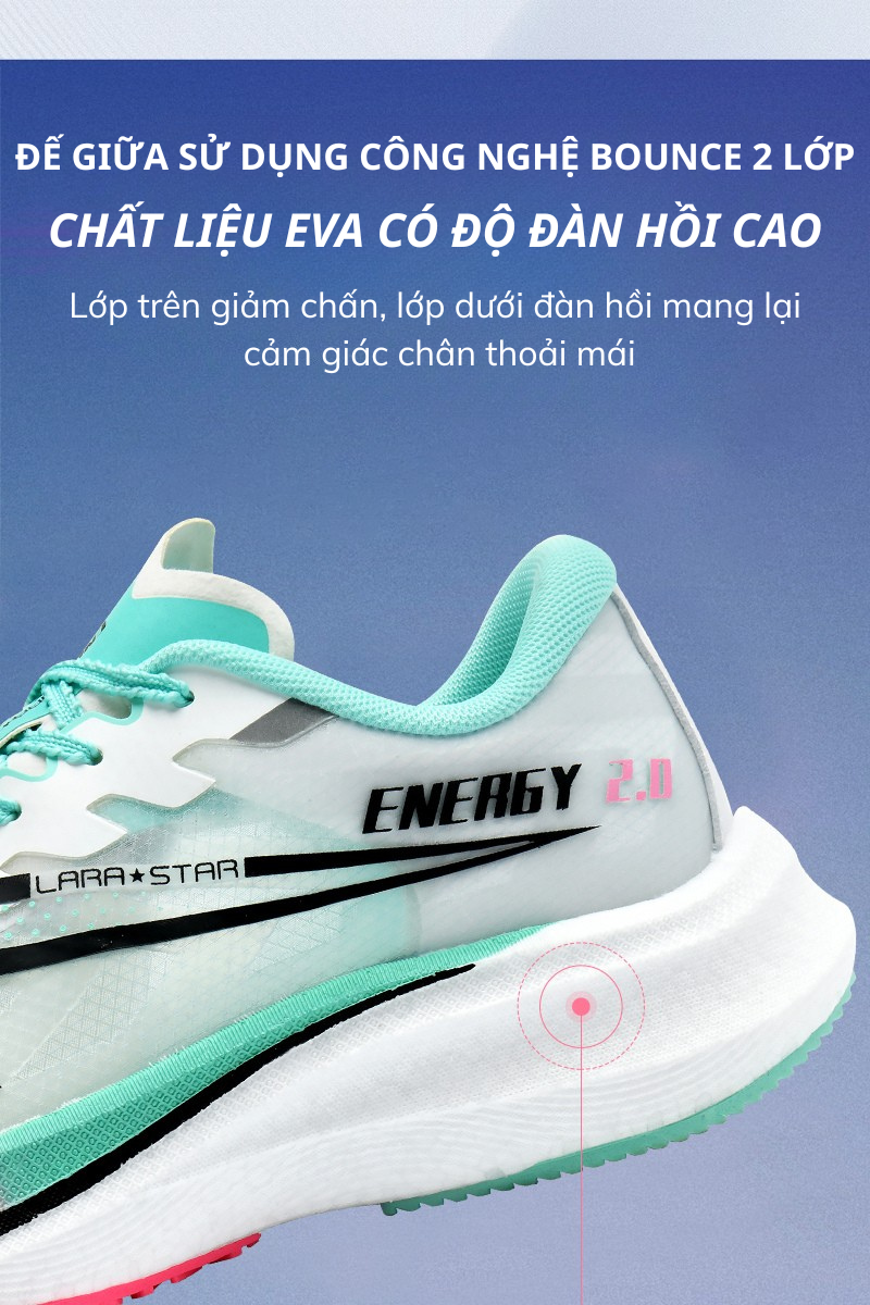 [GIÁ TỐT] Giày Chạy Bộ Thể Thao Lara Star Energy 2.0 LS1037 Siêu Nhẹ,Thoáng Khí, Tấm Đẩy PeBax