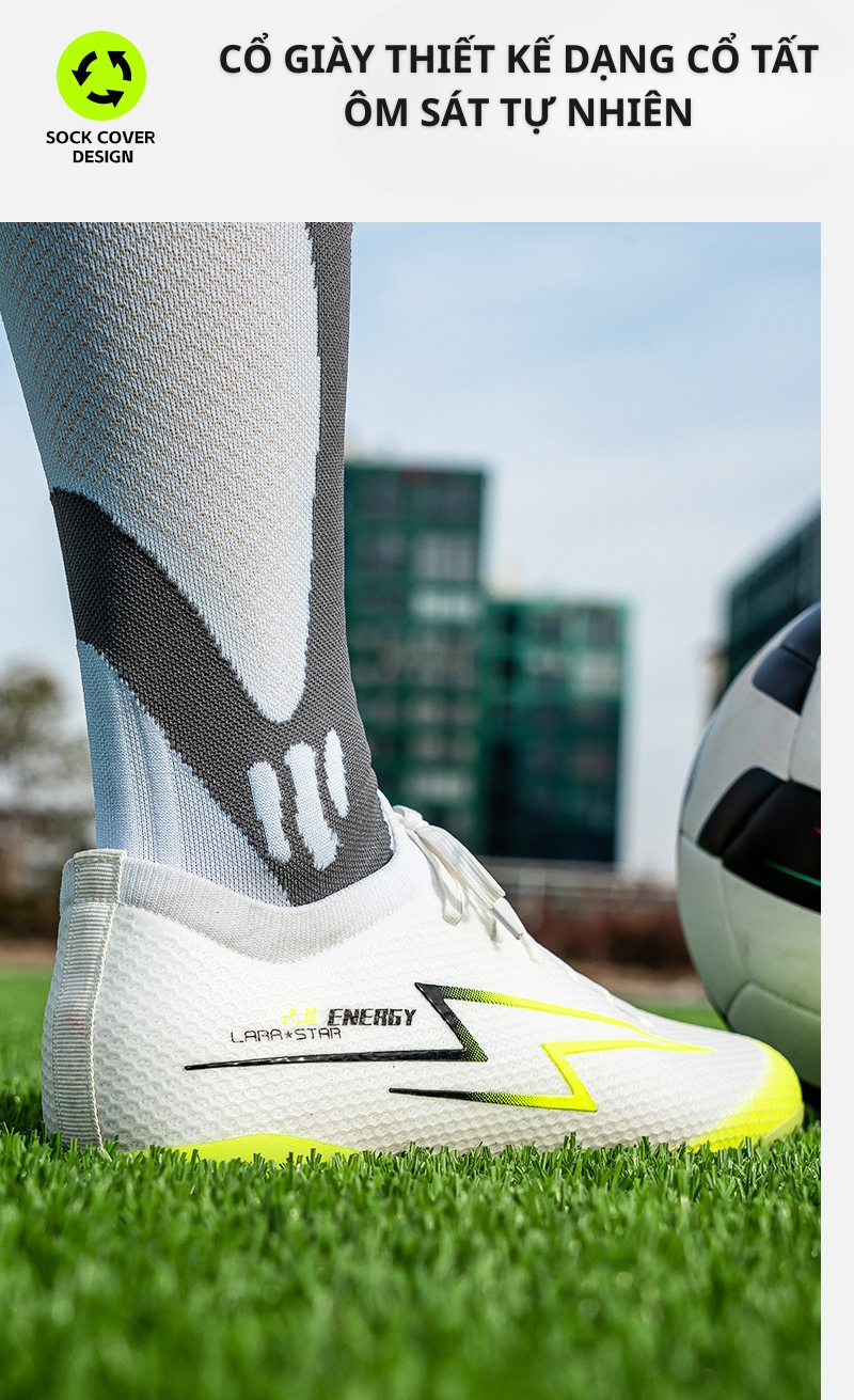 - Cảm giác chân thật và hỗ trợ mạnh mẽ: Sự kết hợp giữa chất liệu thân giày và thiết kế đinh giúp bạn có cảm giác bóng chân thật (cảm giác thoải mái cho bàn chân) và nhận được sự hỗ trợ mạnh mẽ từ giày (hỗ trợ chắc chắn).