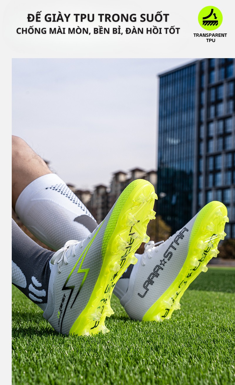 Giày bóng đá đinh dài cao cấp Lara Star LS1081, đinh dài FG đệm cao su, chuyên cho sân cỏ tự nhiên