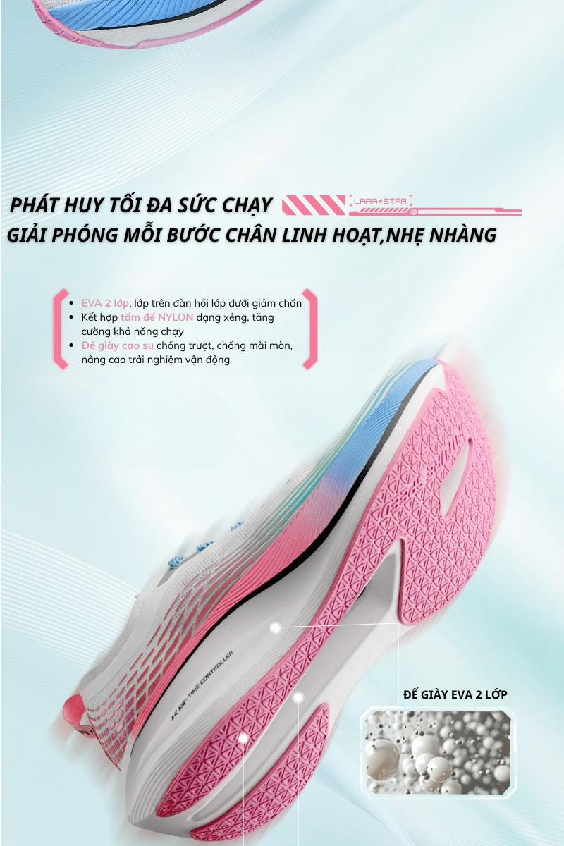 Giày chạy bộ Lara Star LS1049 tấm đế NYLON, giày siêu nhẹ, thoáng khí, lực đẩy tốt cảm giác chạy nhẹ nhàng
