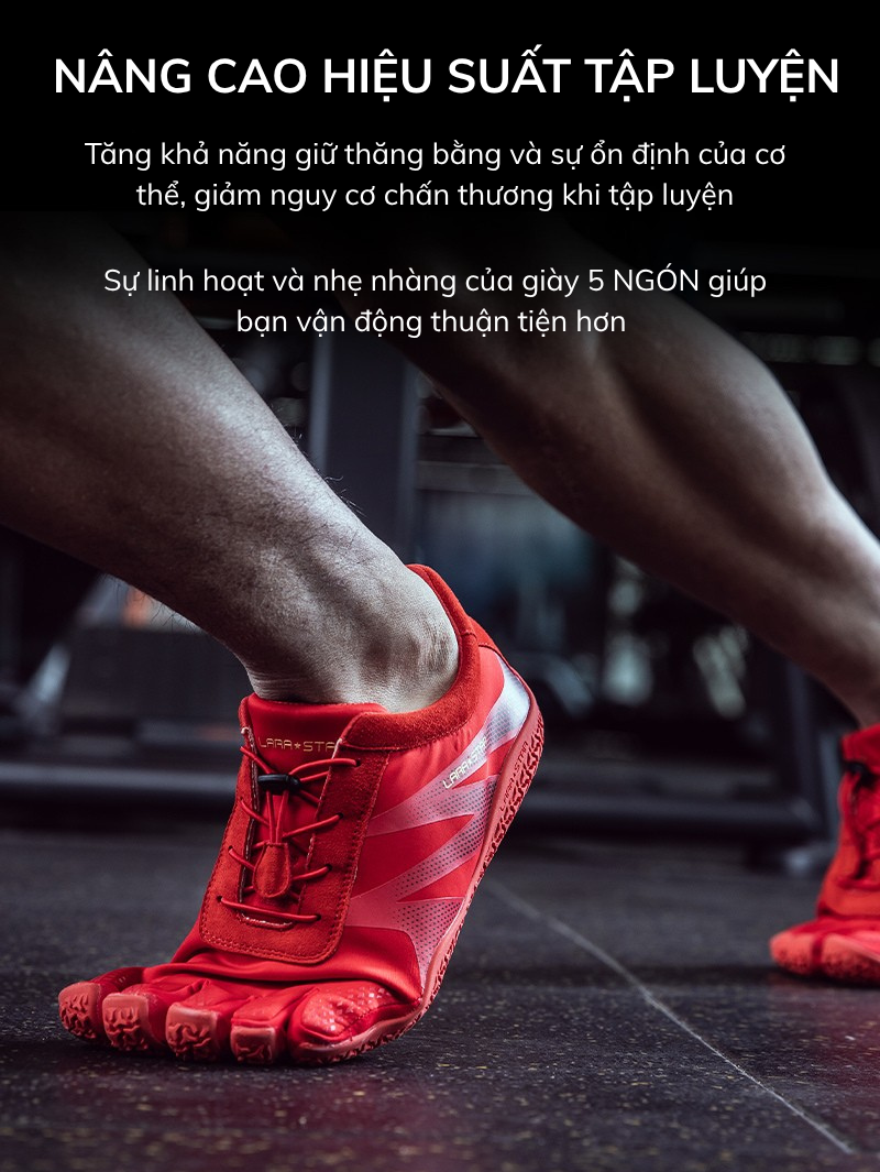 - Nâng Cao Hiệu Suất Tập Luyện: Nhờ sự linh hoạt và nhẹ nhàng, Giày tập Gym 5 Ngón Chuyên Nghiệp giúp bạn vận động thuận tiện hơn, tối ưu hóa các bài tập đòi hỏi sự nhanh nhẹn, chính xác.