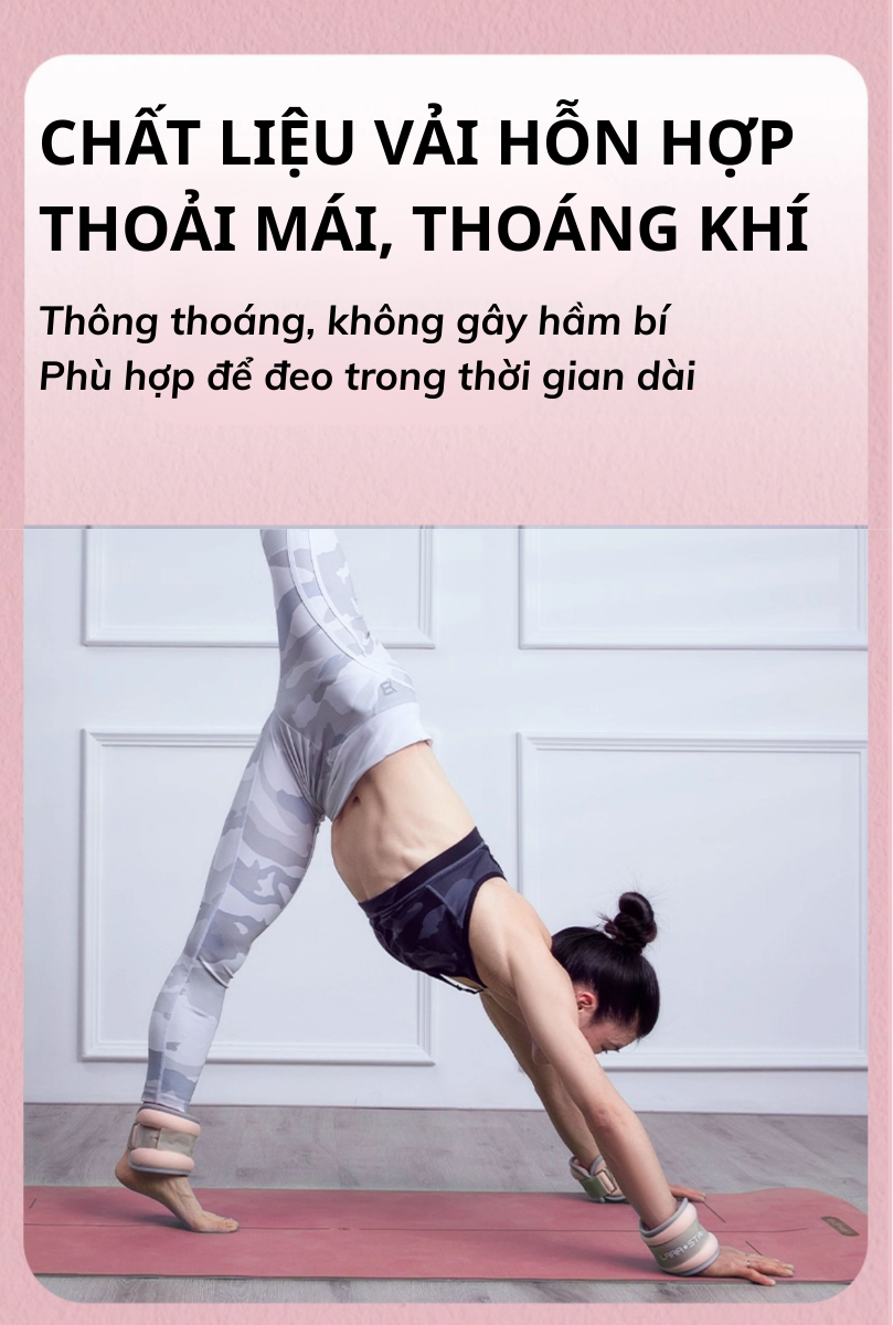 Thiết kế phân ngăn ngang thông minh: Khác với các loại túi cát thông thường dễ bị dồn tích và chảy xệ, sản phẩm có các đường chia ngăn ngang giúp trọng lượng được dàn đều 360 độ quanh cổ tay/chân.