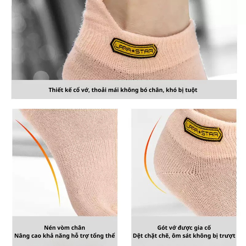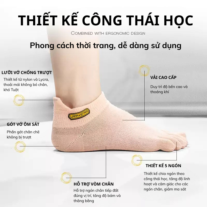 Tất chân cổ thấp, vớ thể thao kiểu 5 ngón Lara Star LS0028, công nghệ thoáng khí CoolMax