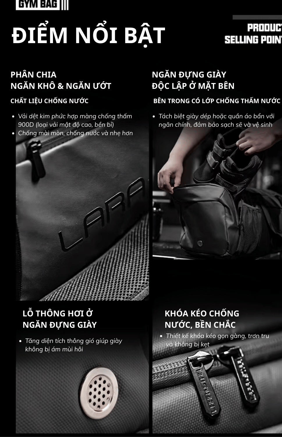 Chiếc túi LARASTAR không chỉ dành cho phòng gym mà còn cực kỳ linh hoạt cho các nhu cầu khác: