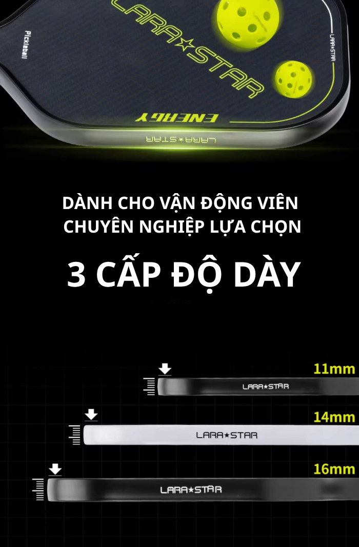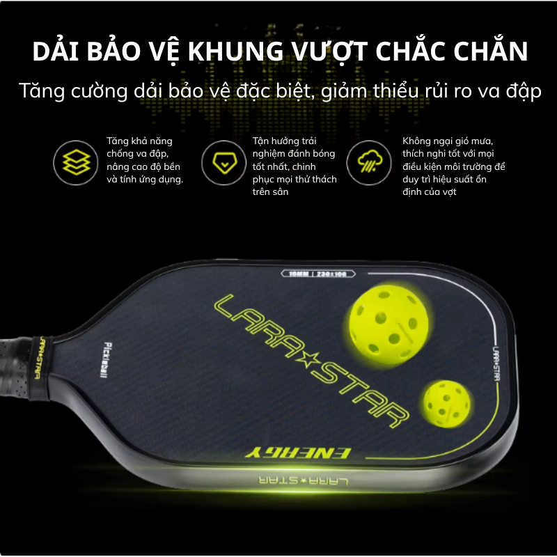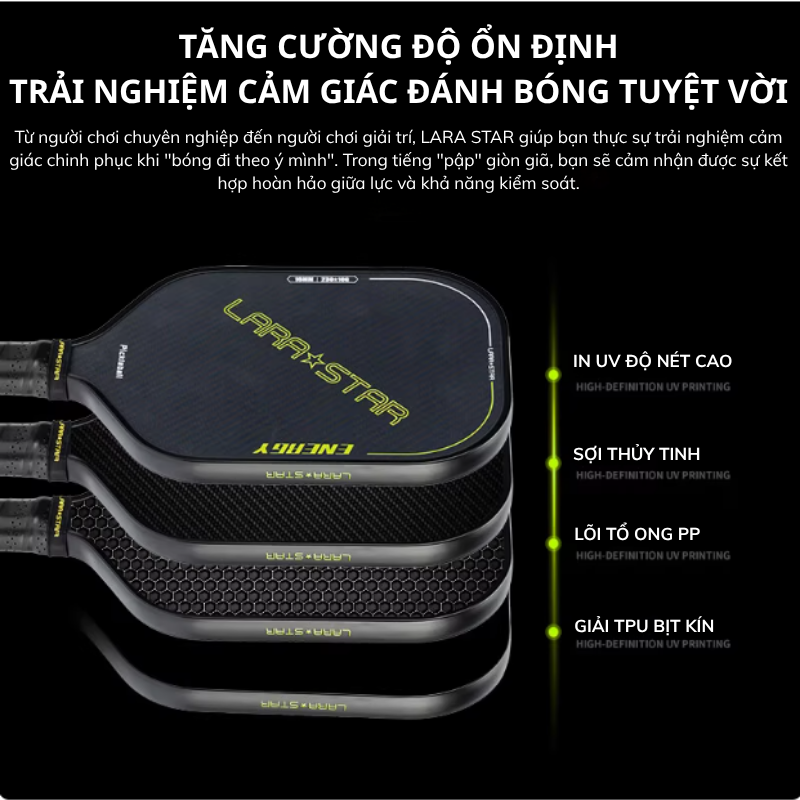 Vợt Pickleball Lara Star siêu nhẹ 220G, sợi carbon thủy tinh, khung vợt chắc chắn, đàn hồi cao